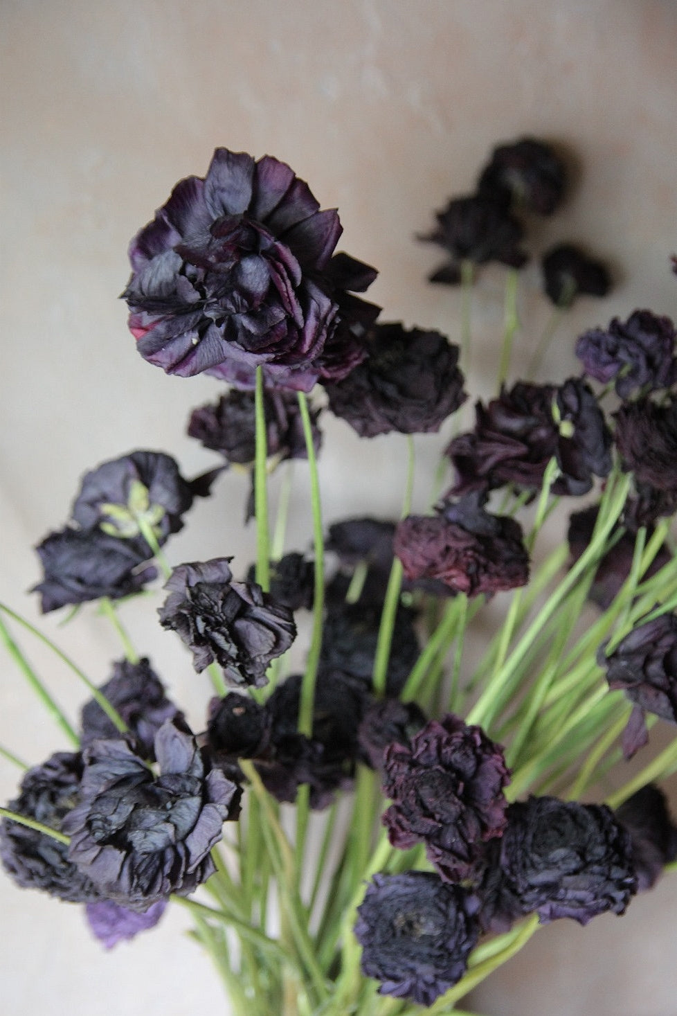 Sold in bunches of 5 stems, these blooms hold a real depth of colour, almost black but containing shades of the deepest red and purple. Stem length varies between approx 20cm - 60cm.
