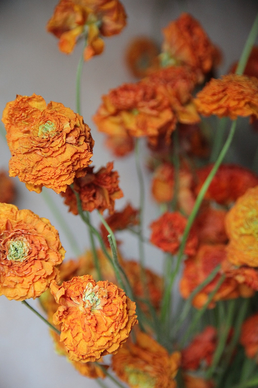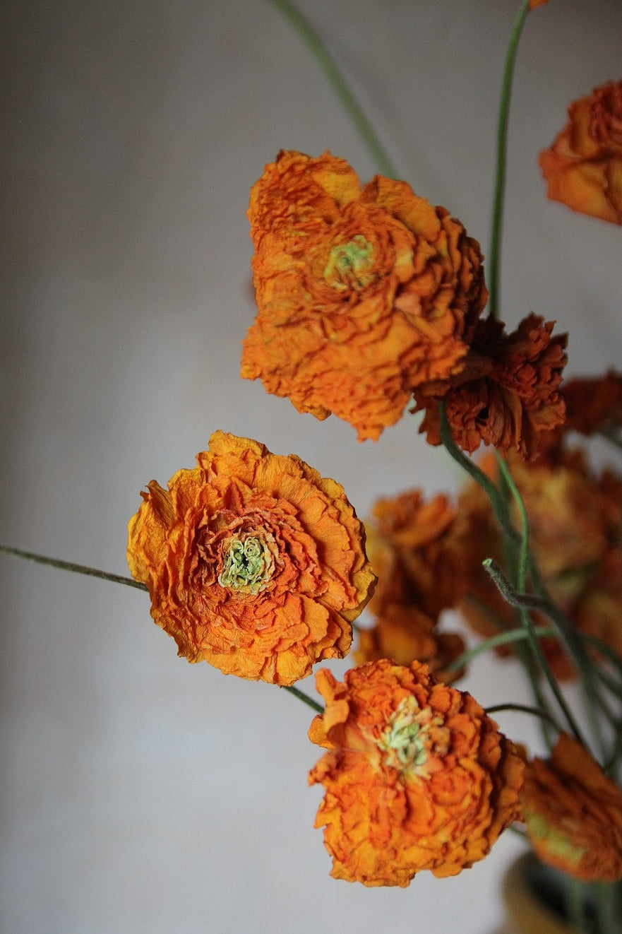 Sold in bunches of 5 stems, these bright orange blooms are so bright and cheerful. Some stems have a paler green centre, but most are a bright bright orange as pictured. Stem length varies between approx 20cm - 60cm.