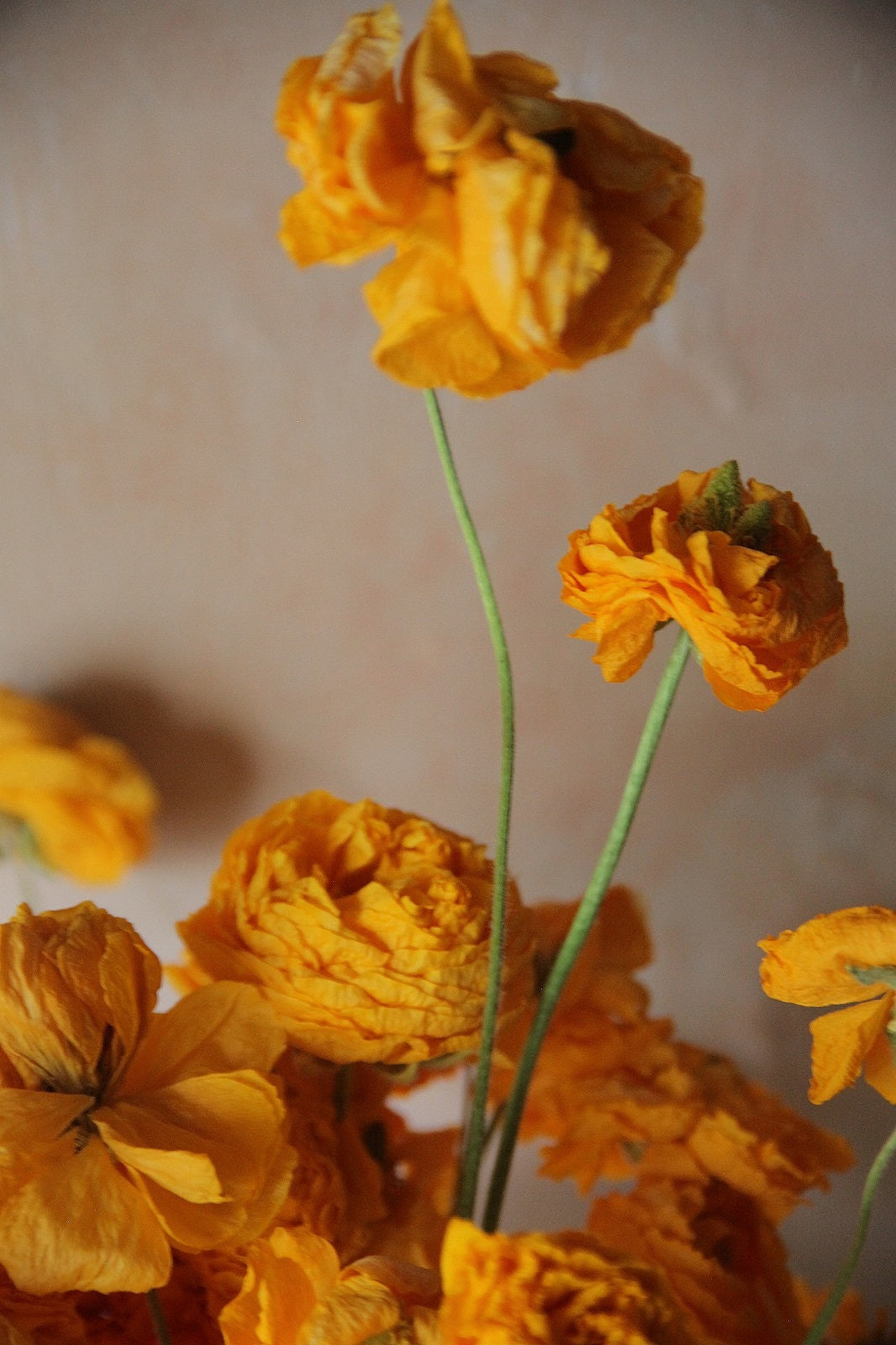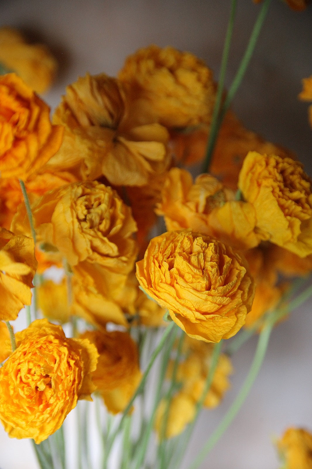 Sold in bunches of 5 stems, these buttercup yellow ranunculus gold their colour amazingly and bring a pop of sunshine to any arrangement. Stem length varies between approx 20cm - 60cm.