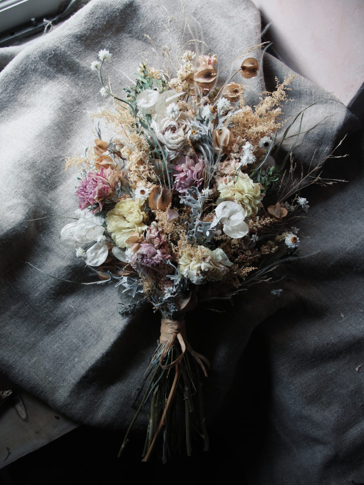 Measuring approximately 70cm in length by 35cm in width, this sheaf is a beautiful way to say goodbye. I create my sheafs on a base of mugwort, a herb long associated with intuition and protection. Arranged with naturally dried flowers and foliage, it offers a soft, ethereal alternative to traditional floral tributes, and can be kept as a lasting memento of your loved one.