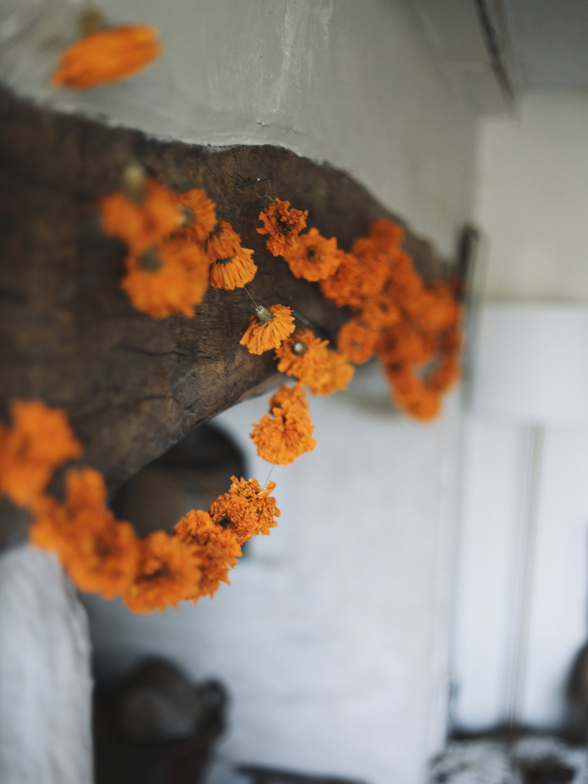 In the depths of winter and beyond, these everlasting marigold garlands bring a sense of joy and warmth. They hold their colour remarkably well— garlands hung in my own home from the 2024 harvest are still almost as vibrant as the day they were created.